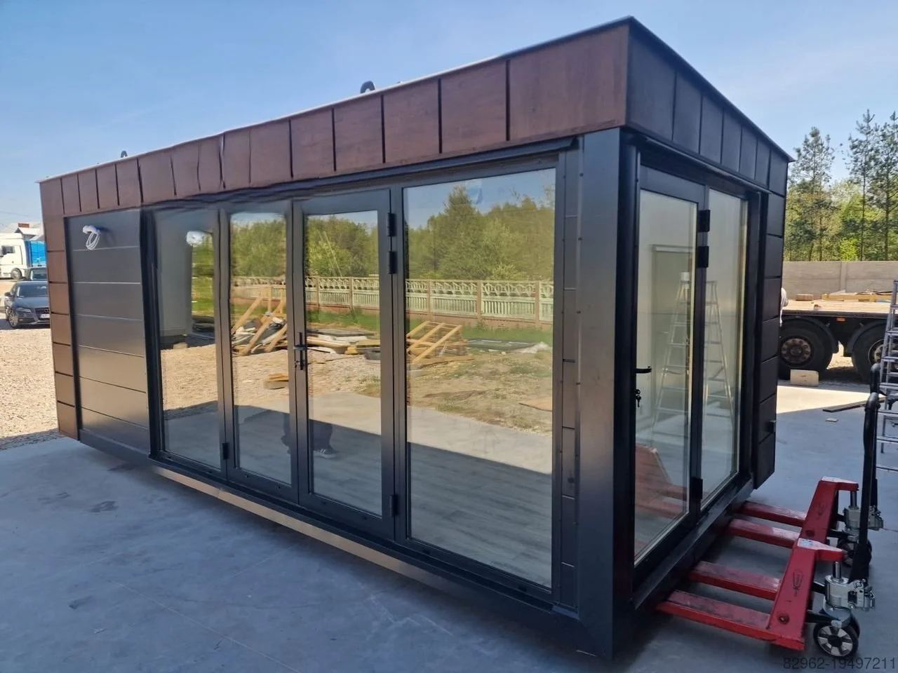 Geeignet als Büro, Verkaufspavillon oder Servicestand. Isoliert und komplett ausgestattet – ganzjährig sofort einsatzbereit.